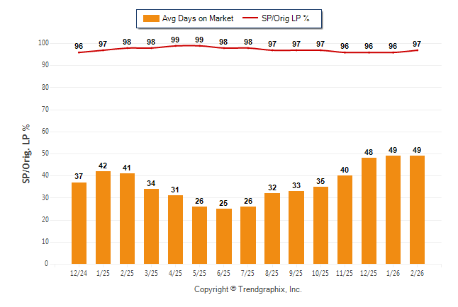 February 2026 Average Days on Market trend was Rising and Sold/Original List Price Ratio Remains Steady**