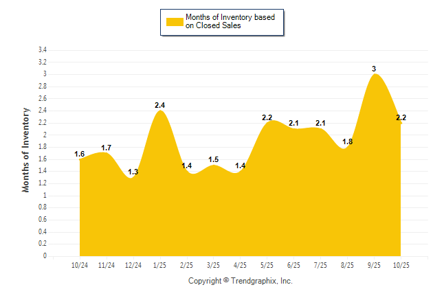 Curnt vs. Same Month 1 Yr Ago: Months of Inventory (Closed Sales)