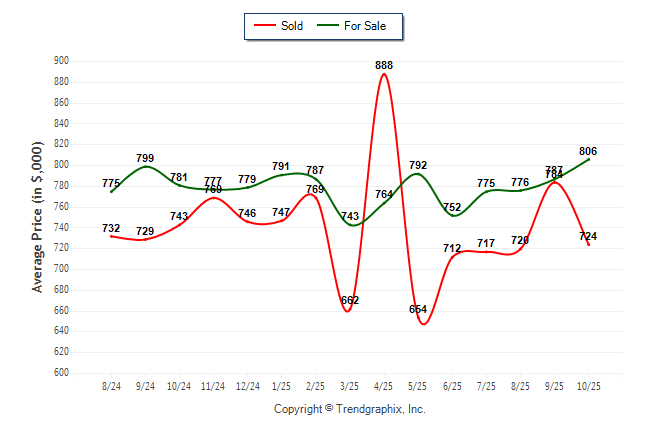October 2025 Average For Sale Price was Appreciating and Average Sold Price was Neutral**