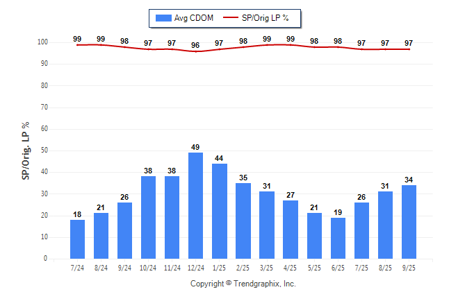 September 2025 Average Continuous Days on Market trend was Rising and Sold/Original List Price Ratio was Falling**