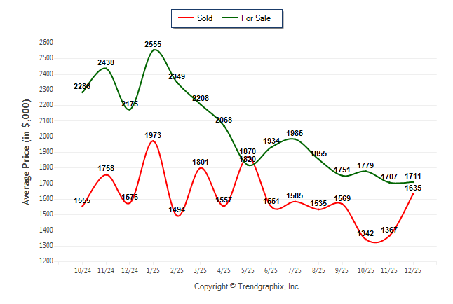 December 2025 Average For Sale Price was Neutral and Average Sold Price was Neutral**