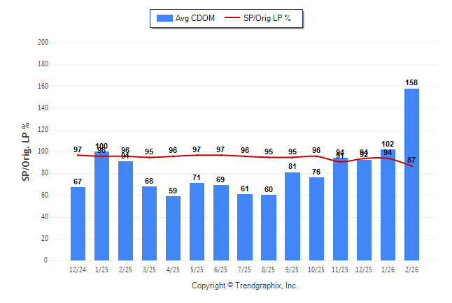 February 2026 Average Continuous Days on Market trend was Rising and Sold/Original List Price Ratio was Falling**