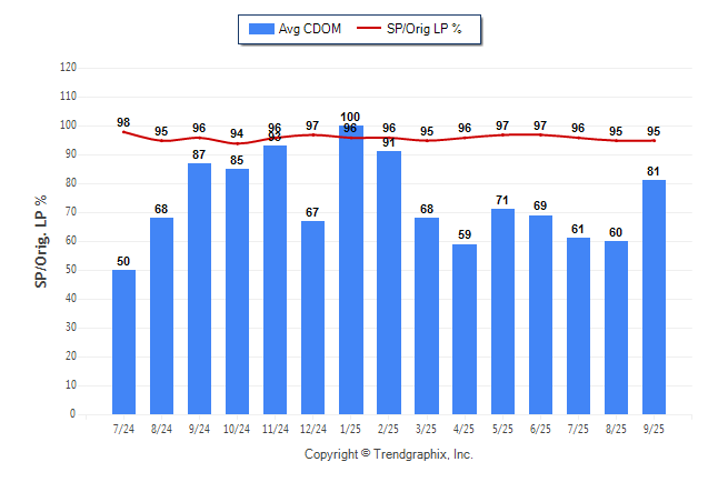 September 2025 Average Continuous Days on Market trend was Rising and Sold/Original List Price Ratio was Falling**