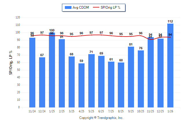 January 2026 Average Continuous Days on Market trend was Rising and Sold/Original List Price Ratio Remains Steady**