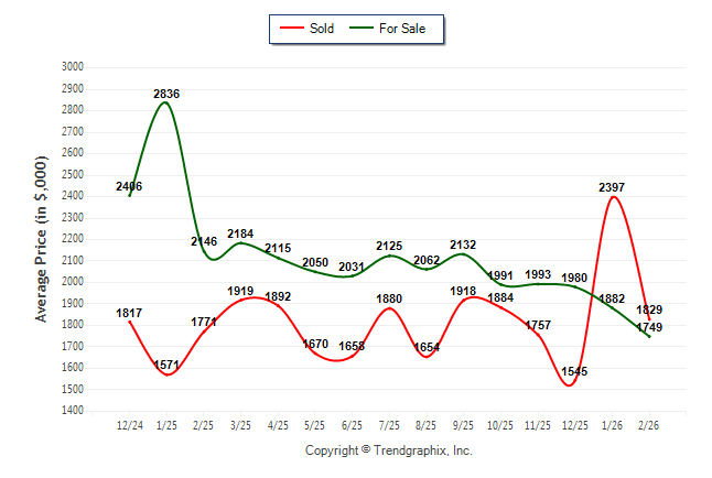 February 2026 Average For Sale Price was Depreciating and Average Sold Price was Neutral**