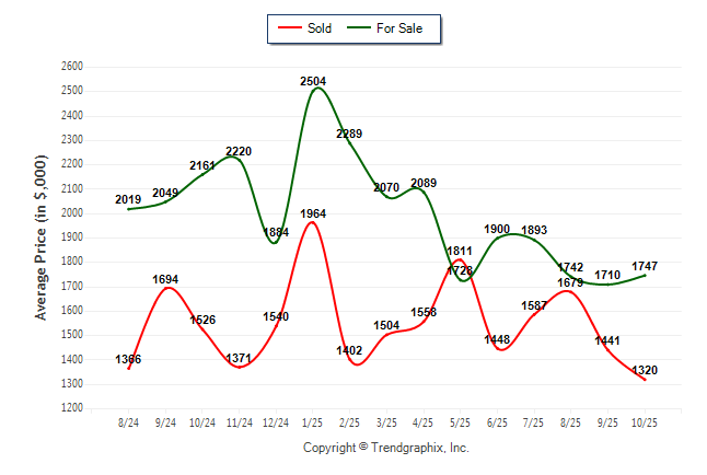 October 2025 Average For Sale Price was Neutral and Average Sold Price was Depreciating**