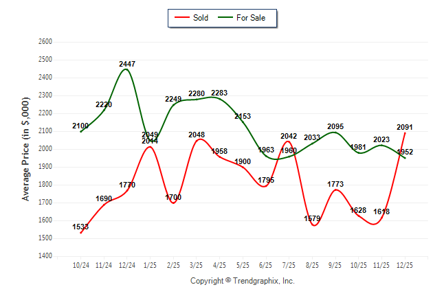 December 2025 Average For Sale Price was Depreciating and Average Sold Price was Neutral**