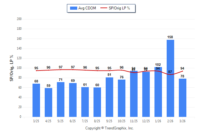 March 2026 Average Continuous Days on Market trend Remains Steady and Sold/Original List Price Ratio Remains Steady**
