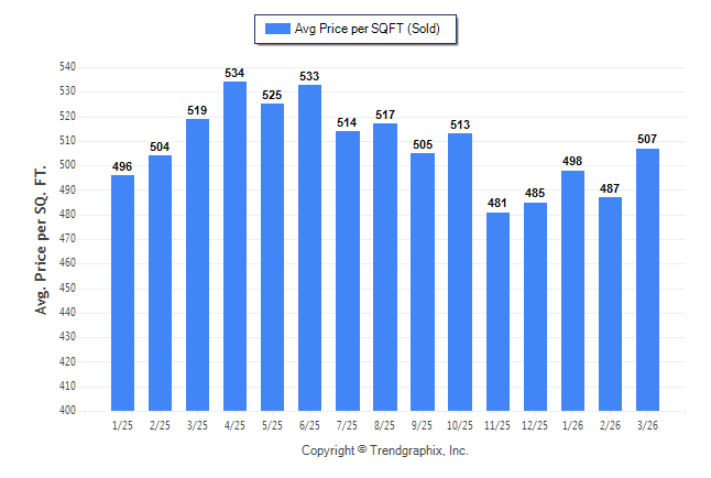 March 2026 Average Sold Price per Square Footage was Appreciating**