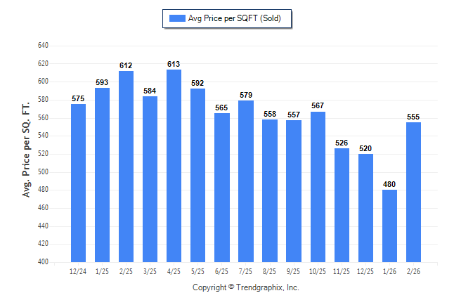 February 2026 Average Sold Price per Square Footage was Neutral**