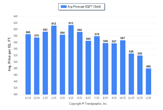 January 2026 Average Sold Price per Square Footage was Depreciating**