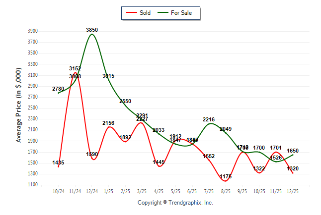 December 2025 Average For Sale Price was Neutral and Average Sold Price was Neutral**