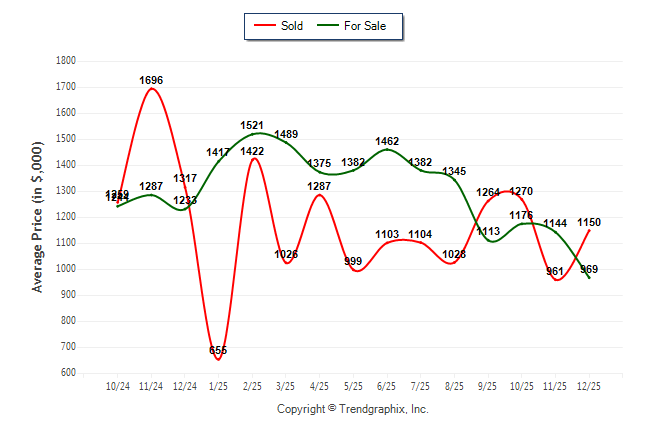 December 2025 Average For Sale Price was Depreciating and Average Sold Price was Neutral**