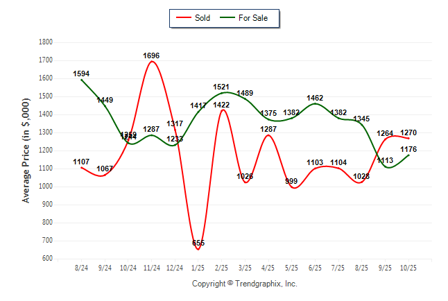 October 2025 Average For Sale Price was Neutral and Average Sold Price was Appreciating**