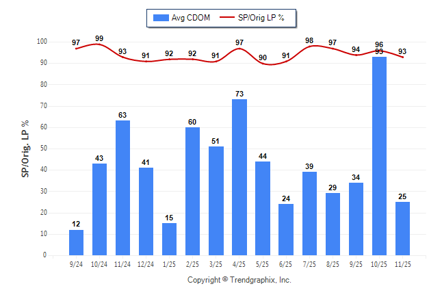 November 2025 Average Continuous Days on Market trend Remains Steady and Sold/Original List Price Ratio was Falling**