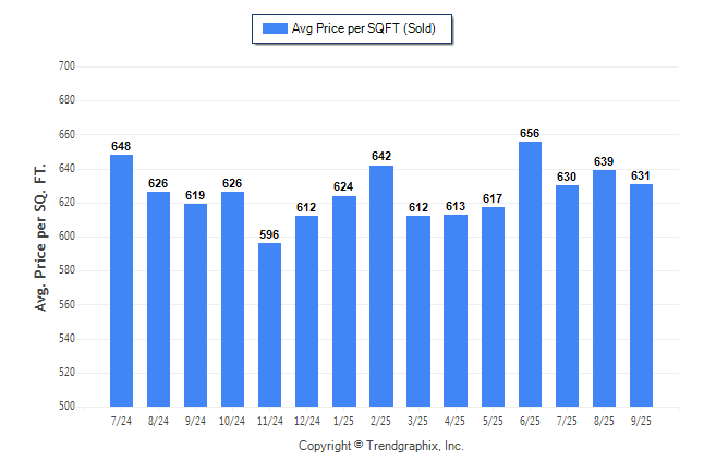 September 2025 Average Sold Price per Square Footage was Neutral**