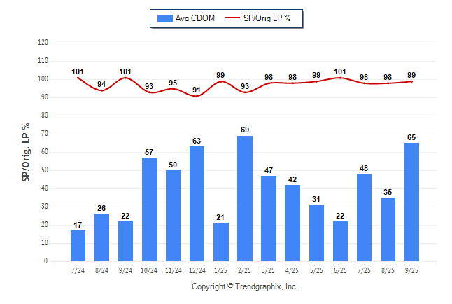 September 2025 Average Continuous Days on Market trend was Rising and Sold/Original List Price Ratio Remains Steady**