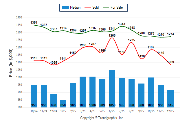 December 2025 Median Price was Depreciating, Avg. For Sale Price was Neutral, and Avg. Sold Price was Depreciating**