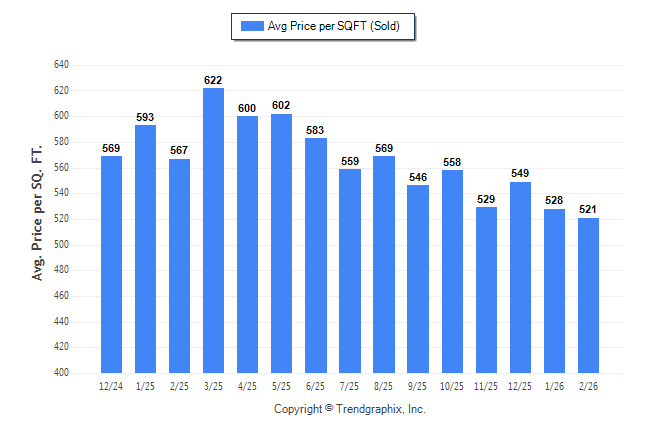 February 2026 Average Sold Price per Square Footage was Depreciating**