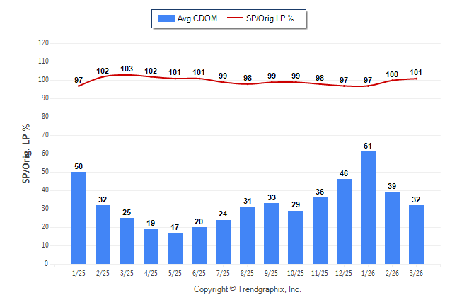 March 2026 Average Continuous Days on Market trend Remains Steady and Sold/Original List Price Ratio was Rising**