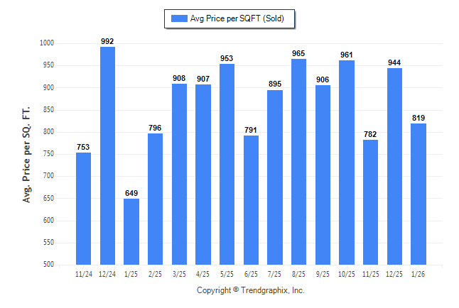 January 2026 Average Sold Price per Square Footage was Neutral**