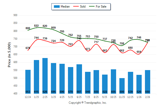 February 2026 Median Price was Appreciating, Avg. For Sale Price was Neutral, and Avg. Sold Price was Appreciating**