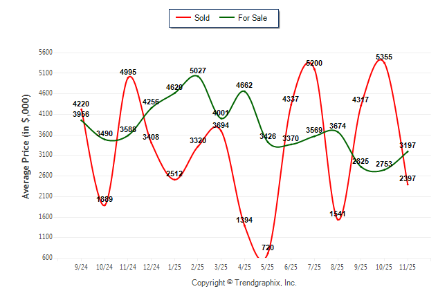 November 2025 Average For Sale Price was Neutral and Average Sold Price was Depreciating**
