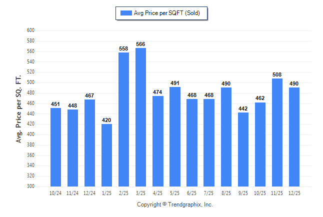 December 2025 Average Sold Price per Square Footage was Neutral**