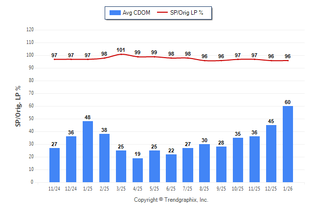 January 2026 Average Continuous Days on Market trend was Rising and Sold/Original List Price Ratio Remains Steady**