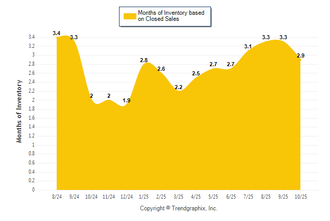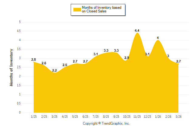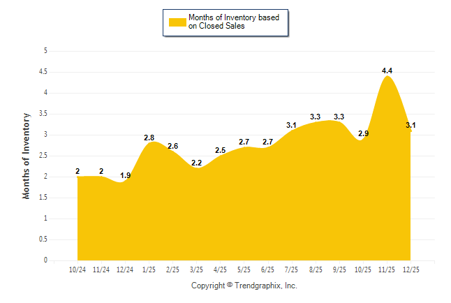 Curnt vs. Same Month 1 Yr Ago: Months of Inventory (Closed Sales)