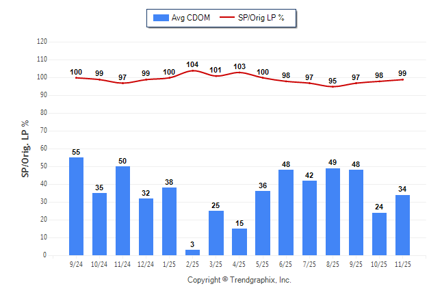 November 2025 Average Continuous Days on Market trend Remains Steady and Sold/Original List Price Ratio was Rising**