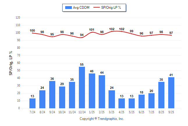 September 2025 Average Continuous Days on Market trend was Rising and Sold/Original List Price Ratio was Falling**