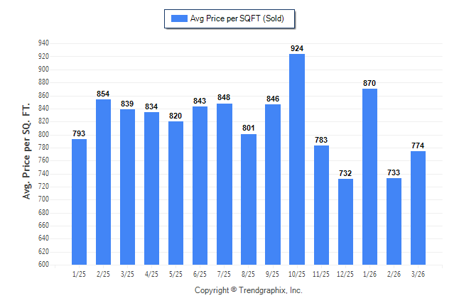 March 2026 Average Sold Price per Square Footage was Neutral**