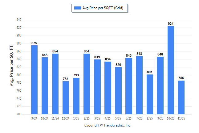 November 2025 Average Sold Price per Square Footage was Neutral**