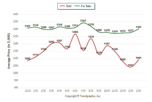 February 2026 Average For Sale Price was Appreciating and Average Sold Price was Neutral**