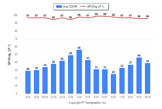 October 2025 Average Continuous Days on Market trend Remains Steady and Sold/Original List Price Ratio was Falling**