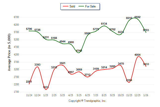 January 2026 Average For Sale Price was Neutral and Average Sold Price was Neutral**
