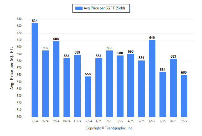 September 2025 Average Sold Price per Square Footage was Depreciating**