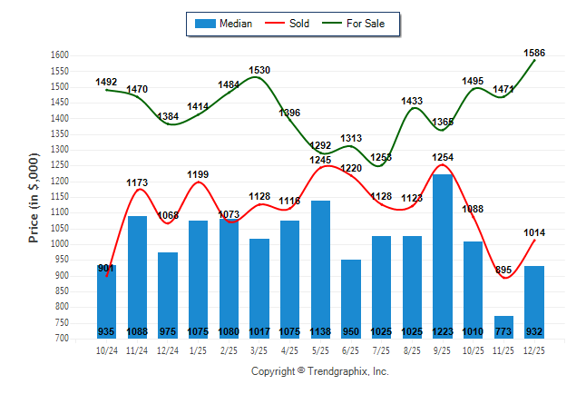 December 2025 Median Price was Neutral, Avg. For Sale Price was Appreciating, and Avg. Sold Price was Neutral**