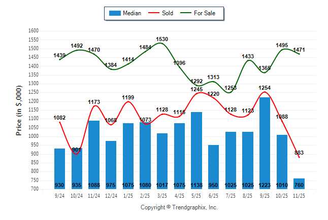 November 2025 Median Price was Neutral, Avg. For Sale Price was Neutral, and Avg. Sold Price was Depreciating**