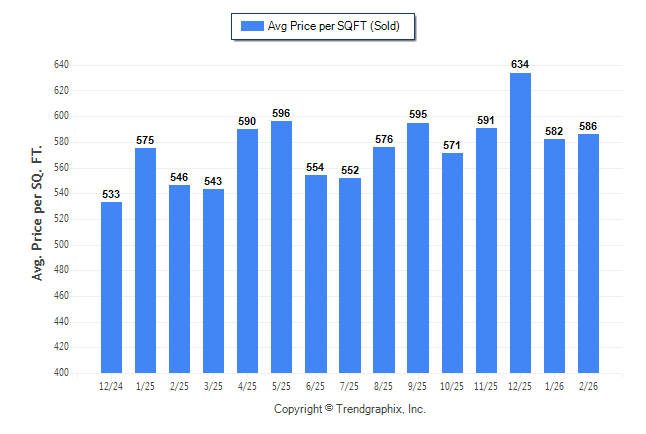 February 2026 Average Sold Price per Square Footage was Neutral**