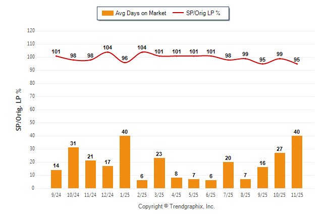 November 2025 Average Days on Market trend was Rising and Sold/Original List Price Ratio was Falling**