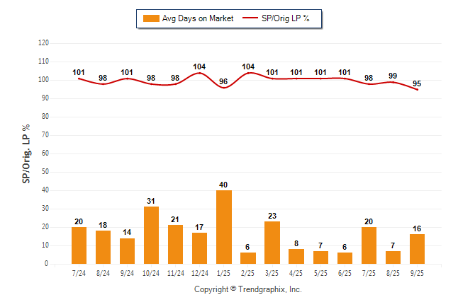September 2025 Average Days on Market trend Remains Steady and Sold/Original List Price Ratio was Falling**