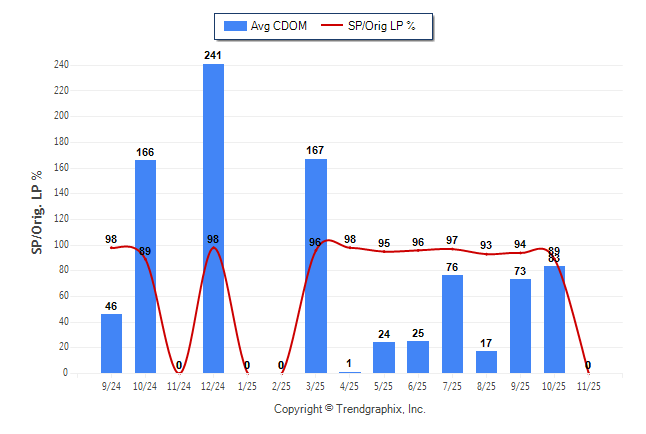 November 2025 Average Continuous Days on Market trend Remains Steady and Sold/Original List Price Ratio was Falling**