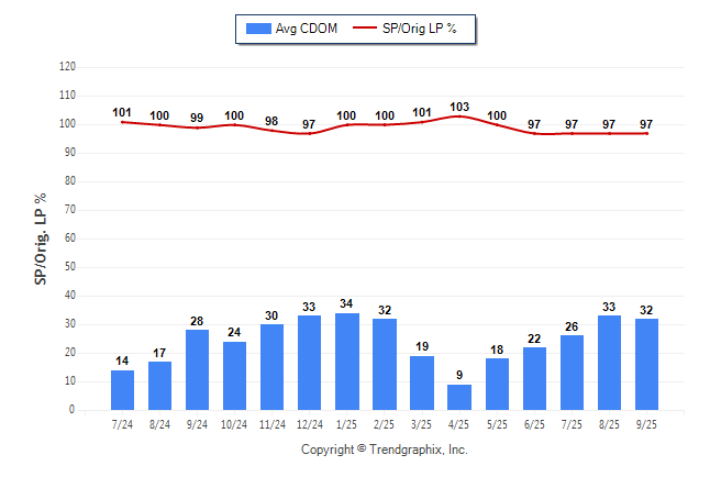September 2025 Average Continuous Days on Market trend Remains Steady and Sold/Original List Price Ratio was Falling**