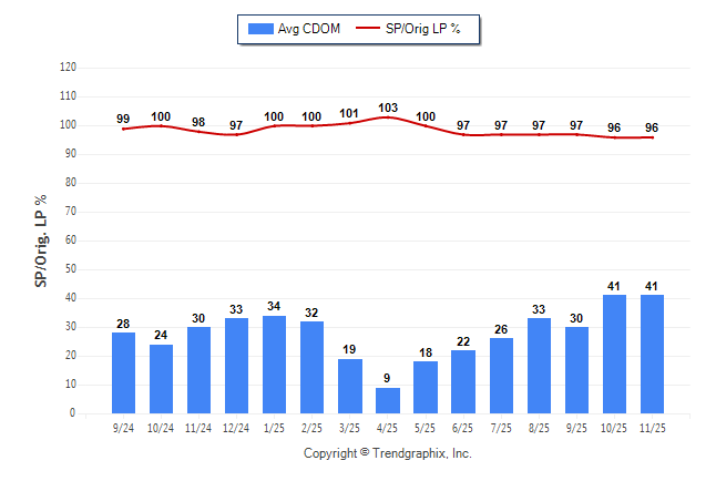 November 2025 Average Continuous Days on Market trend was Rising and Sold/Original List Price Ratio was Falling**