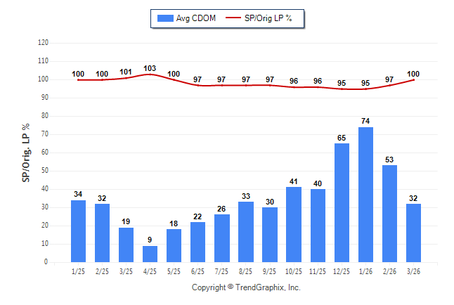 March 2026 Average Continuous Days on Market trend Remains Steady and Sold/Original List Price Ratio was Rising**