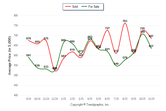 November 2025 Average For Sale Price was Neutral and Average Sold Price was Neutral**
