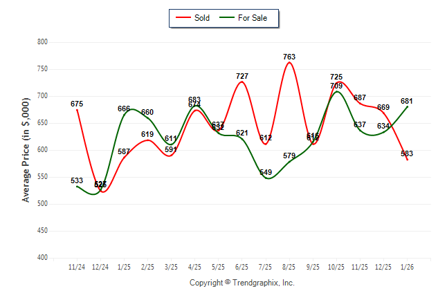 January 2026 Average For Sale Price was Appreciating and Average Sold Price was Depreciating**