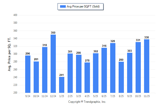 November 2025 Average Sold Price per Square Footage was Appreciating**